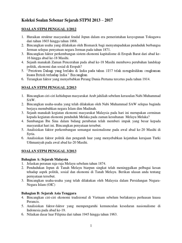 Koleksi Soalan Sebenar Sejarah Stpm 2013 Pdf